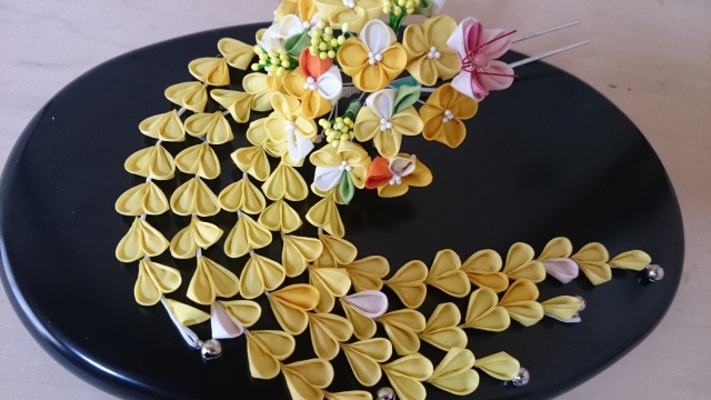 You’ll learn a new technique for this accessory. Tsubaki need fewer parts than the previous flowers we’ve made, but the technique is a little more difficult. After some practice, I’m sure you will find your way. Remember that tsumami zaiku isn’t hard; it just takes patience. Don’t give up and enjoy making it!