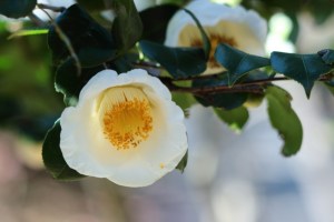 The “tsubaki” is the Japanese camellia. It is an ancient flower mentioned in Japan’s oldest collections of poems, “The Anthology of Myriad Leaves,” about 1250 years ago.
