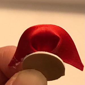 4. Put the bottom edge between the paper disc and underneath the petal before the glue on the paper disc dries.