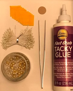 6. Put glue on the disc and place your blue petals evenly.