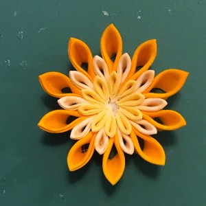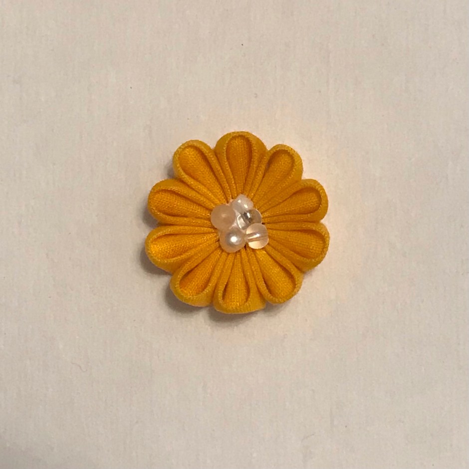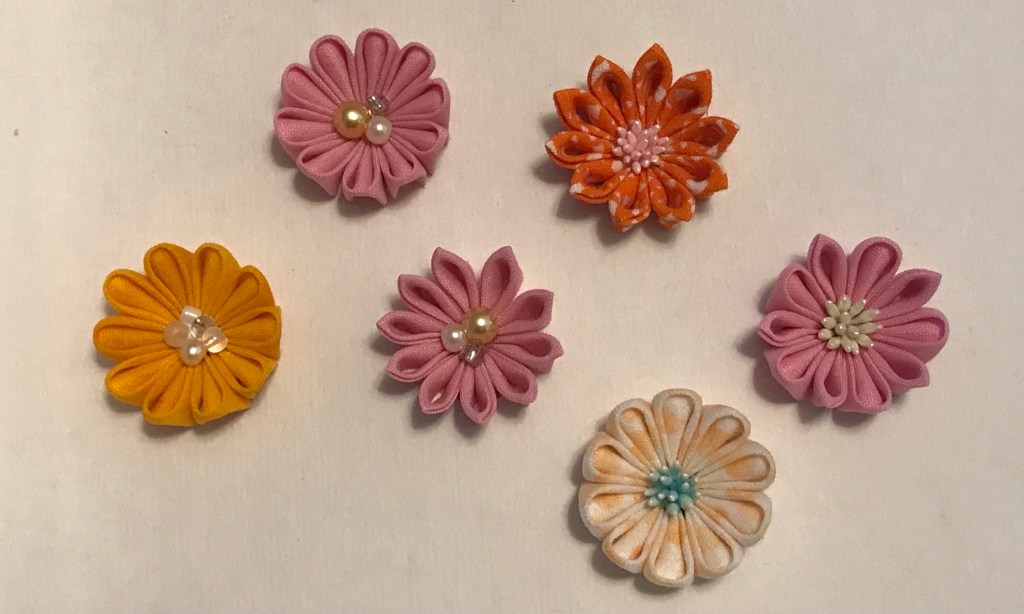 1.Make Maru-tsumami with the 1.5 and 1 inch cloths.
