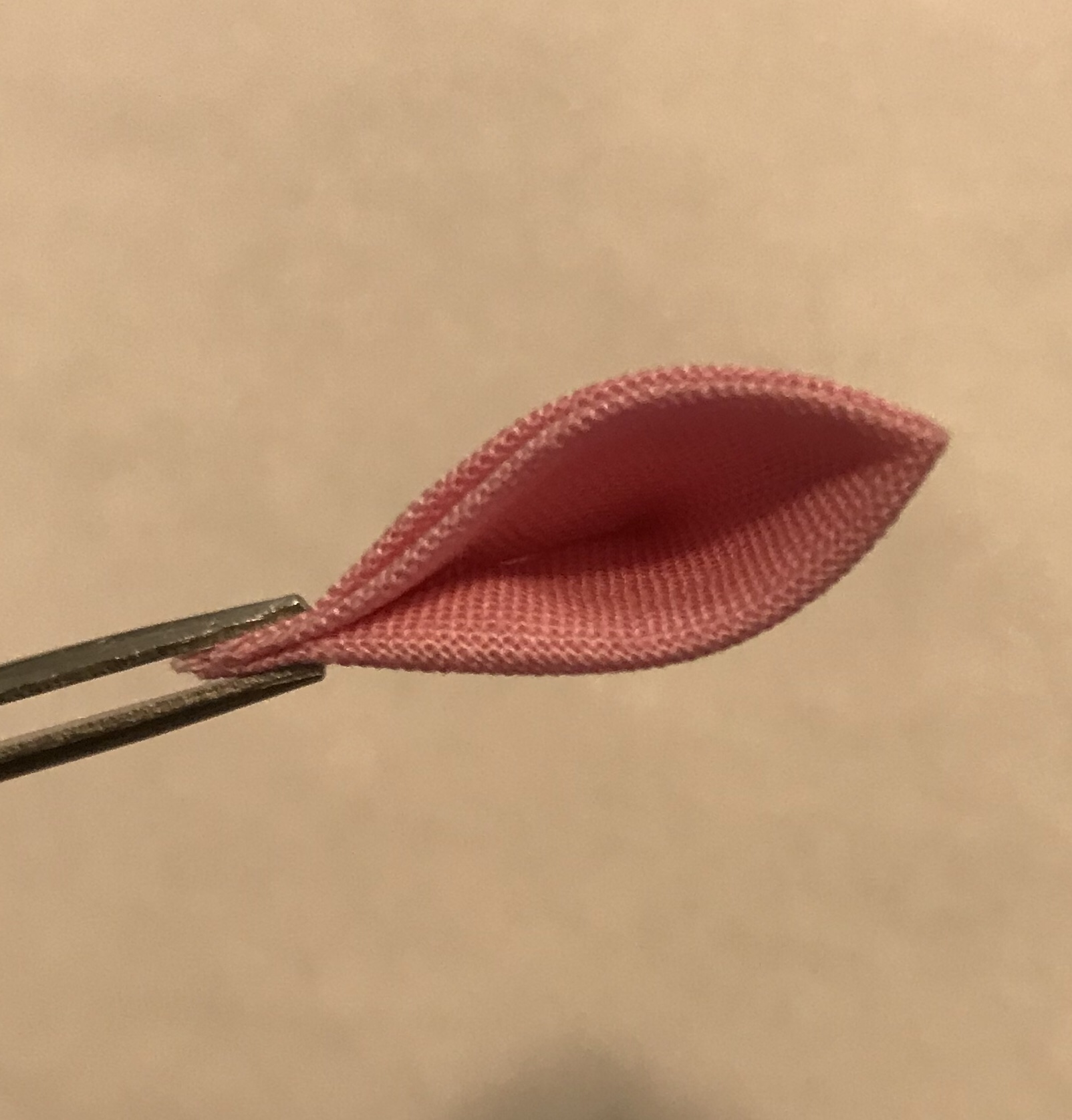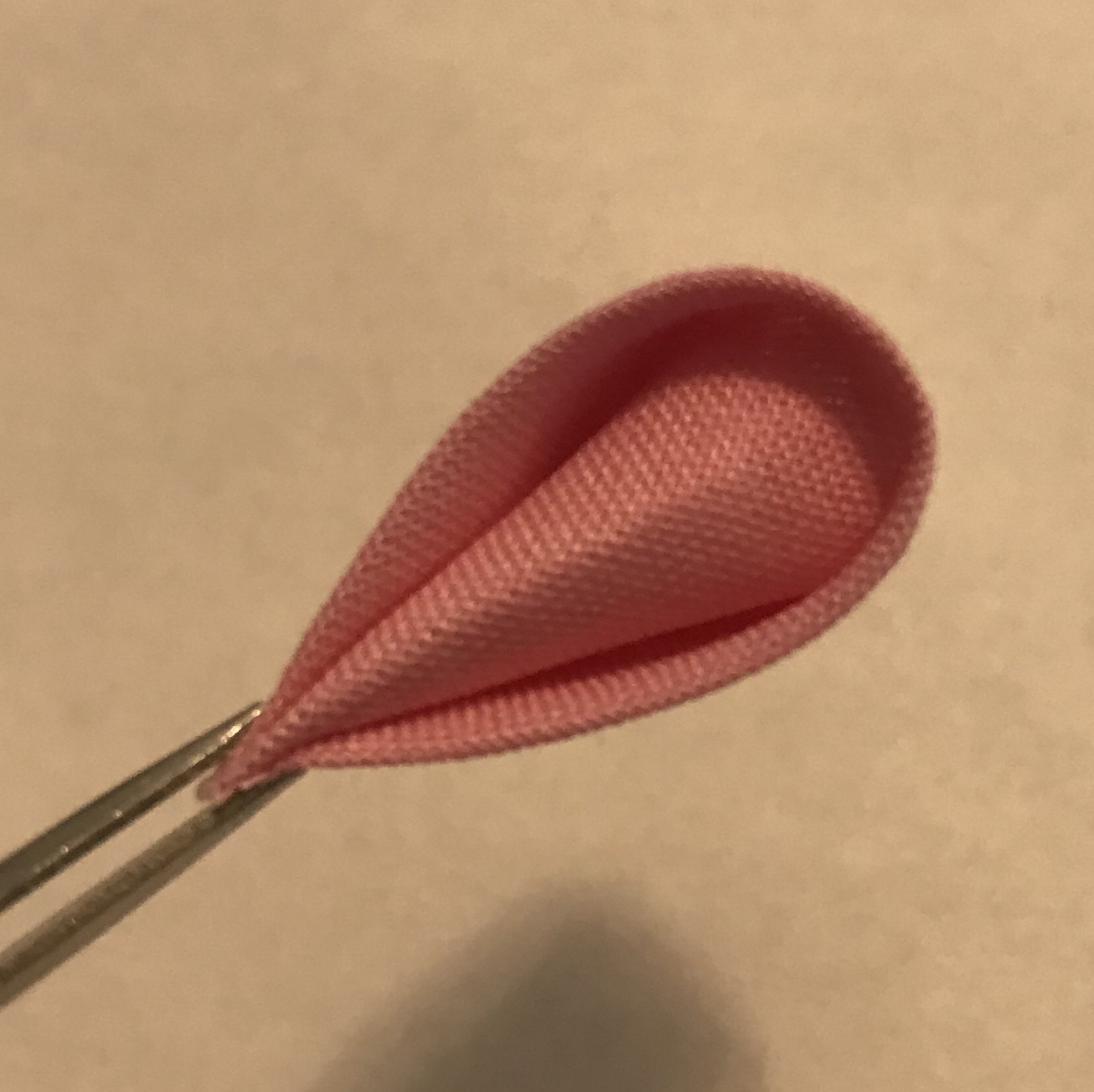 Then, it’s just tucking the square cloth and gluing it down, which creates the shape of a flower petal. There are 2 main tucking methods: